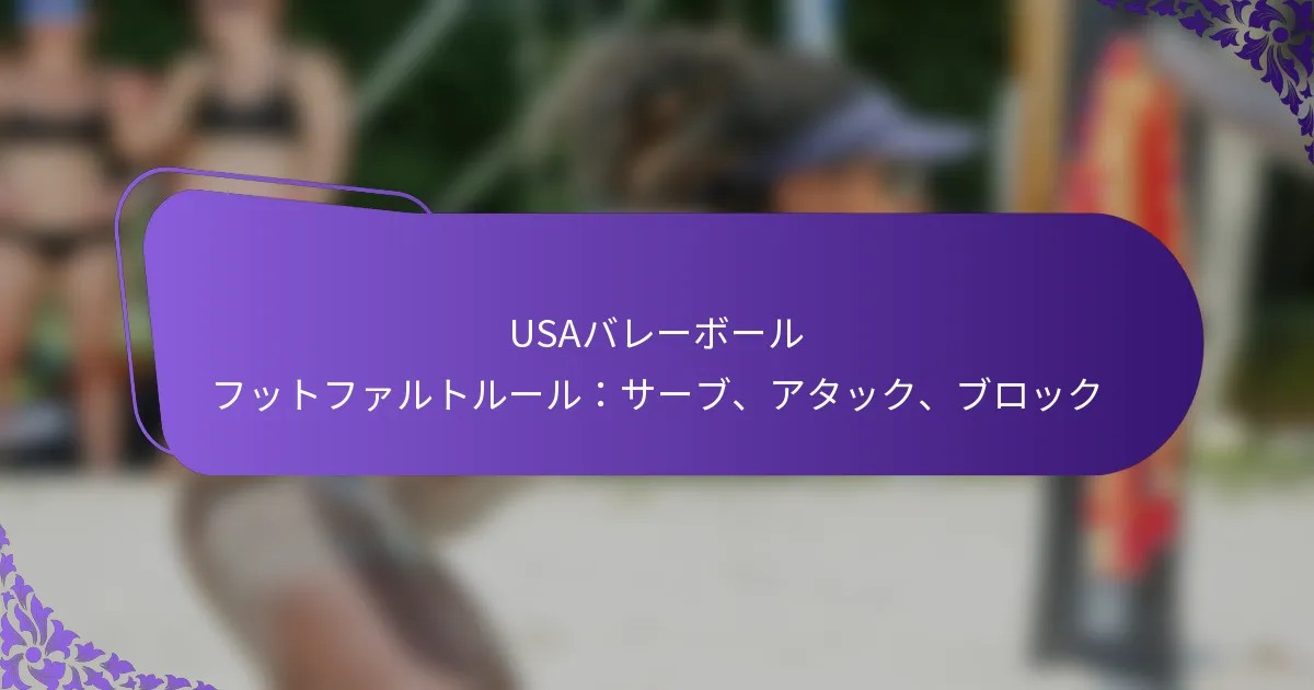 アメリカバレーボールにおいて、フットファウルは、選手がサーブ、アタック、またはブロックなどの重要な瞬間に足を不適切に配置した場合に発生します。この違反は、試合の結果に影響を与えるペナルティをもたらす可能性があるため、プレイ中の合法性と流れを維持するためには、適切な足の配置が不可欠です。 バレーボールにおけるフットファウルとは? バレーボールにおけるフットファウルは、選手がサーブ、アタック、またはブロック中に足の配置に関するルールに違反した場合に発生します。この違反は、ポイントやサーブの喪失につながり、試合の結果に影響を与える可能性があります。 フットファウルの定義 フットファウルは、選手の足が試合中の特定の行動中に境界線を越えた場合に発生する違反として定義されます。これは、サーブ、アタック、またはブロック中に発生し、選手の足は指定されたエリア内に留まる必要があります。このような違反は、公平なプレイを確保するために審判によって厳しく監視されています。 サーブ中に、サーバーがボールに接触する前にエンドラインの上または前に足を踏み出すと、フットファウルが発生します。アタックやブロックの場合、選手が相手のコートに足を踏み入れたり、アクション中にセンターラインを越えたりするとフットファウルが発生する可能性があります。 フットファウルの一般的な原因 フットファウルは、選手がゲームプレイ中に犯すさまざまなミスから生じることがあります。一般的な原因には以下が含まれます: サーブ中にエンドラインの上または前に足を踏み出す。 ブロックやアタック中にセンターラインを越える。 ジャンプサーブやスパイク中の不適切な足の配置。 プレイを実行する際にバランスとコントロールを維持できない。 選手はしばしばボールに集中しすぎて足の位置を無視し、これらの違反を引き起こします。意識と練習がこれらのエラーを減らすのに役立ちます。 フットファウルを理解する重要性 フットファウルを理解することは、選手、コーチ、審判がゲームの整合性を維持するために重要です。これらのルールを知っていることで、選手は試合の結果に影響を与える不必要なペナルティを避けることができます。また、コーチはチームをより規律正しく、プレイ中に意識を持たせるためのトレーニングに役立ちます。 さらに、フットファウルを認識することで、選手の全体的なパフォーマンスが向上し、より良いフットワークとポジショニングを促進します。これにより、サーブ、アタック、ブロックのスキルが向上し、最終的にはチームの成功に寄与します。 バレーボールにおけるフットファウル用語 フットファウルに関連する特定の用語に精通することで、選手とコーチの間のコミュニケーションが向上します。重要な用語には以下が含まれます: エンドライン: サービスエリアの後ろにある境界線。 センターライン: コートを二等分する線。 サービスエリア: 選手がボールをサーブするための指定されたエリア。 アタックライン: フロントロー選手とバックロー選手を分ける線。 これらの用語を理解することで、選手はルールをよりよく把握し、ゲームプレイ中に情報に基づいた決定を下すことができます。 ゲームプレイにおけるフットファウルの例 いくつかのシナリオがバレーボールにおけるフットファウルを示しています。例えば、サーブ中に選手がボールを打つ前にエンドラインに足を踏み出すと、フットファウルが発生します。これは、サーブが不正と見なされ、相手チームにポイントが与えられることを意味します。 別の例として、フロントロー選手が相手のアタックをブロックするためにジャンプし、センターラインの相手側に着地する場合があります。この違反も相手チームにポイントを与える可能性があります。 これらの例を認識することで、選手は動きを調整し、ペナルティを避けることができ、最終的にはコート上でのパフォーマンスを向上させることができます。 アメリカバレーボールにおけるサーブのフットファウルルールは? アメリカバレーボールにおけるフットファウルは、選手がサーブ中に足を不適切に配置した場合に発生し、違反となります。適切な足の配置は、サーブの合法性や全体のゲームフローに影響を与えるため、非常に重要です。 サーブ中の足の配置 サーブを行う際、選手はボールを打つまで両足をエンドラインの後ろに保つ必要があります。この配置は、サーブが合法であり、ゲームの整合性を維持することを保証します。選手はまた、サーブ中にラインの上または前に足を踏み出すとフットファウルが発生することを認識しておく必要があります。 さらに、選手はボールに接触する前にラインを越えた位置からジャンプすることを避けるべきです。これにより、自動的に違反となり、サーブが無効になり、相手チームにポイントが与えられます。 適切な足の配置