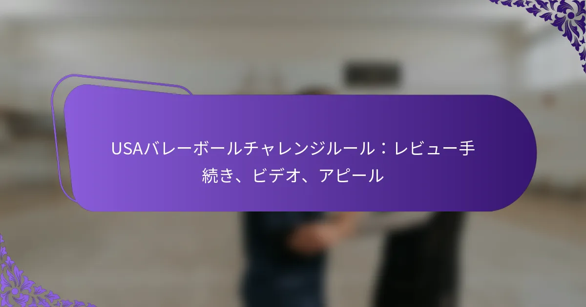 USAバレーボールのチャレンジルールは、試合中に審判が行った特定の判定に対してチームが異議を唱えるための構造化されたアプローチを提供します。ビデオ技術を利用することで、これらのルールはレビューが公平かつ正確に行われることを保証し、ゲームの整合性を高めつつ、その流れを維持します。チームは、異議を申し立てるためにビデオ証拠に対して定義された基準に従う必要があります。 USAバレーボールのチャレンジルールとは? USAバレーボールのチャレンジルールは、試合中の特定のプレーをレビューするための手続きと基準を概説しています。これらのルールにより、チームは審判が行った特定の決定に異議を唱えることができ、公平性と正確性を確保します。 チャレンジ可能なプレーの定義 チャレンジ可能なプレーとは、審判が行った特定の決定であり、ビデオ技術を使用してレビューできるものです。一般的な例としては、ボールがインかアウトかの判定、ネット違反、サーブ中のフットファルトなどがあります。チームは、これらの定義されたカテゴリーに該当するプレーのみをチャレンジできます。 さらに、プレーはチャレンジの資格を得るために試合規則で明確に定義されている必要があります。この明確さは、異議申し立てが異なる試合でどのように適用されるかの一貫性を維持するのに役立ちます。 チャレンジを開始するための基準 チャレンジを開始するには、チームは判定が行われた後の限られた時間内に行う必要があります。通常、これは数秒以内であり、ゲームを遅延させることなく即座に反応できるようにします。チームキャプテンまたは指定された選手は、審判に対してチャレンジを明確に合図する必要があります。 チームは、チャレンジに関するルールを明確に理解していることが重要です。基準を誤解すると、試合中に機会を無駄にしたり、フラストレーションを感じたりすることにつながります。 チャレンジの制限 チームが認識しておくべきチャレンジにはいくつかの制限があります。たとえば、チームはセットごとに限られた数のチャレンジしか使用できず、競技ルールに応じて通常1から3の範囲です。一度チームがチャレンジを使い果たすと、それ以上のレビューを開始することはできません。 さらに、選手の行動に関する主観的な判定や審判による判断の呼び出しなど、特定のプレーはチャレンジ不可能と見なされる場合があります。これらの制限を理解することは、効果的なゲーム戦略にとって重要です。 成功したチャレンジの結果 チャレンジが成功した場合、元の判定は覆され、正しい決定が適用されます。これにより、ポイントが与えられたり、プレーの結果が変更されたりするなど、試合に大きな変化が生じる可能性があります。成功したチャレンジは、チームの士気や自信を高めることにもつながります。 さらに、チャレンジが成功と見なされた場合、チームはそのチャレンジを保持でき、試合の後半で再度使用することができます。この戦略的な利点は、接戦の試合において重要な役割を果たすことがあります。 失敗したチャレンジの結果 失敗したチャレンジは、元の決定が維持される結果となり、関与したチームにとっては失望をもたらす可能性があります。さらに、チームはしばしばセットのチャレンジ機会を失い、試合の後半での選択肢が制限されることがあります。 場合によっては、チームはタイムアウトの喪失やポイントの減点などのペナルティを受けることもあります。これらの影響を理解することは、チームが判定に異議を唱えるタイミングを判断するために重要です。 USAバレーボールにおけるレビュー手続きはどのように機能しますか? USAバレーボールにおけるレビュー手続きは、試合中に行われた特定の判定に対してチームがチャレンジできるようにし、ビデオ技術を利用して正確性を確保します。このプロセスは、公平性を高めつつゲームの流れを維持するために設計されており、評価のための定義されたステップと基準があります。 レビュー手続きに関わるステップ レビュー手続きは、チームが審判の判定に対してチャレンジすることを決定した時に始まります。チームキャプテンは、判定後の限られた時間内にチャレンジを合図しなければなりません。通常、これは数秒以内です。 チャレンジが開始されると、試合は一時停止し、審判はビデオレビューシステムを参照します。ビデオ映像が分析され、元の判定が正しかったか、覆されるべきかが判断されます。 映像をレビューした後、審判はチームに決定を伝えます。チャレンジが成功した場合、判定は逆転されます。そうでない場合、チャレンジを行ったチームはチャレンジ機会を失うことがあります。 レビュー手続きにおける審判の役割 審判はレビュー手続きにおいて重要な役割を果たし、チャレンジが公平かつ効率的に行われることを保証します。主審はプロセス全体を監督