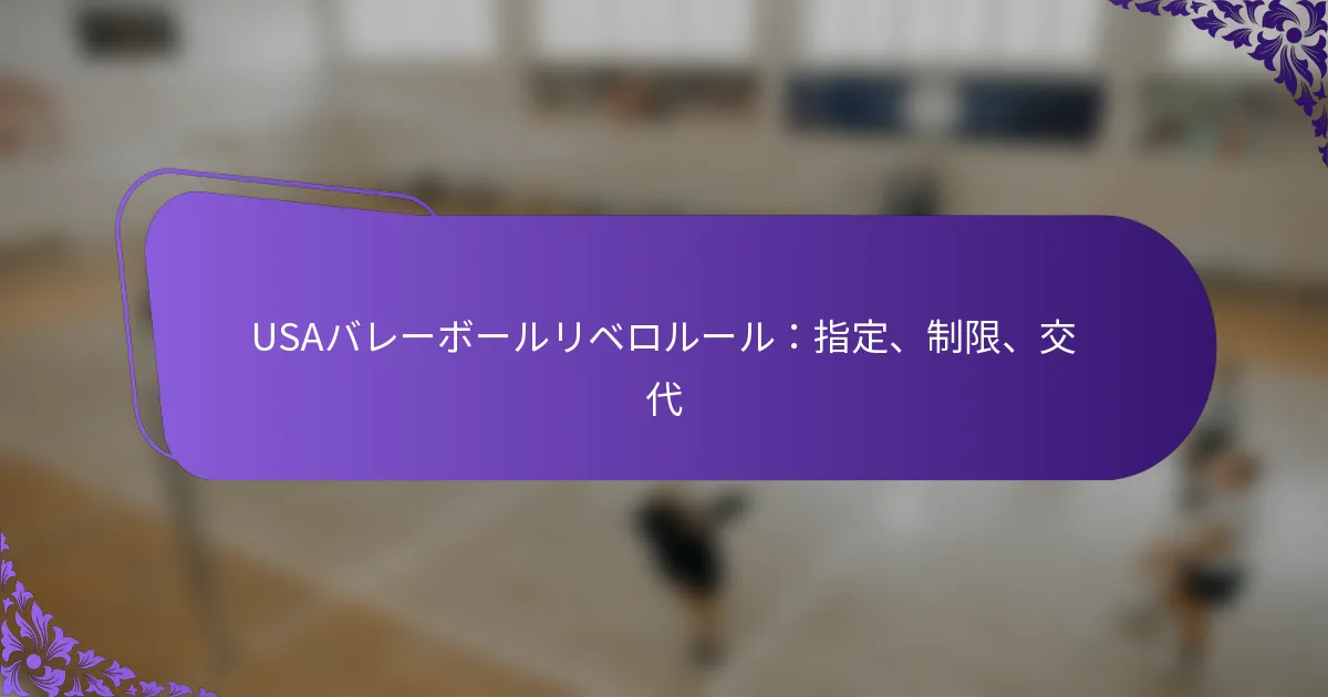 リベロは、アメリカバレーボールにおける専門的な守備選手であり、チームのバックローの守備を強化するために異なる色のジャージを着用します。この役割には、ネットの高さを超えてボールを攻撃したり、サーブしたり、ブロックしたりすることができないなど、特定の制限があります。さらに、リベロは試合中に交代が可能で、チームの総交代数に影響を与えず、コーチに守備戦略の柔軟性を提供します。 アメリカバレーボールにおけるリベロの役割とは? リベロは、アメリカバレーボールにおける専門的な守備選手であり、チームのバックローの守備を強化するために指定されています。この選手は異なる色のジャージを着用し、試合への参加に関する特定のルールがあります。 リベロポジションの定義 リベロポジションはバレーボールにおいて独特であり、主に守備スキルに焦点を当てています。特にサーブの受け取りや攻撃のディグにおいて重要です。リベロはネットの高さを超えてボールを攻撃することができず、これが他の選手との違いです。彼らの主な役割は、チーム全体の守備とボールコントロールを向上させることです。 試合中、リベロはサーブを打ったり、ブロックしたり、ネットの上でボールを打とうとしたりすることができません。この制限は、彼らの守備専門性を強調しています。リベロは、事前に審判に通知することなく、任意のバックロー選手と交代することができ、試合中の柔軟な資産となります。 リベロに指定されるための基準 リベロに指定されるためには、選手はアメリカバレーボールが定めた特定の基準を満たさなければなりません。まず、彼らはチームのメンバーであり、リベロの役割と責任を明確に理解している必要があります。コーチは通常、試合前にリベロを指定し、この指定は試合中一貫して維持されなければなりません。 さらに、リベロは他の選手と区別するために対照的なジャージを着用しなければなりません。このジャージは明確に視認でき、チームの他のユニフォームとは異なる色でなければなりません。指定は、コーチが別の選手をリベロの役割に交代することを決定した場合にのみ変更できますが、これは審判に通知されなければなりません。 リベロ選手の特徴 成功するリベロは、通常、優れた守備スキル、敏捷性、迅速な反応を持っています。彼らはチームの中で最も優れたパッサーの一人であり、サーブを受け取り、攻撃を正確に返すことができます。強いコミュニケーションスキルも重要であり、リベロは効果的な守備を確保するためにチームメイトと調整する必要があります。 技術的なスキルに加えて、リベロはゲームをよく理解し、相手のプレーを読み取る能力を持っているべきです。ボールがどこに行くかを予測する能力は、成功したディグやパスを行うために重要です。メンタルの強さと回復力も重要であり、彼らはしばしば相手チームからの強力な攻撃に直面します。 チームダイナミクスにおけるリベロの役割 リベロは、バレーボールチームの全体的なダイナミクスにおいて重要な役割を果たします。守備に集中することで、他の選手は攻撃戦略に集中できます。この専門性は、特にサーブの受け取りやスパイクに対する守備において、チームのパフォーマンスを向上させることができます。 さらに、リベロはコート上でリーダーとしての役割を果たし、守備を指揮し、プレーを整理するのを助けます。彼らの存在はチームの士気を高めることができ、しばしば試合の流れを変える重要なプレーを行います。リベロが試合にスムーズに交代できる能力も、プレーの流れを維持するのに役立ちます。 リベロの指定に関する一般的な誤解 一般的な誤解の一つは、リベロが単なるバックアップ選手またはスキルの低いアスリートであるということです。実際には、リベロは高いレベルのスキルとゲームの理解を必要とする専門的なポジションです。彼らはしばしばチームの中で最もスキルの高い守備選手の一人です。 もう一つの誤解は、リベロが他の選手のようにボールを攻撃できるということです。しかし、ルールは明確にリベロがネットの高さを超えてボールを打つことができないと述べており、これは彼らの役割の基本的な側面です。これらの違いを理解することは、リベロのチームへの貢献を評価するために不可欠です。 アメリカバレーボールにおけるリベロに適用される制限は何ですか? アメリカバレーボールにおけるリベロには、他の選手との違いを明確にする特定の制限があります。主に、リベロはネットの高さを超えてボールを攻撃したり、サーブしたり、ブロックしたりすることができず、これがコート上での守備責任を形作ります。 ボールを攻撃することに関する制限 リベロは、ボールがネットの高さを超えている場合に攻撃することが禁止されています。これは、攻撃ヒットを通じてポイントを得るような方法でボールを打つ