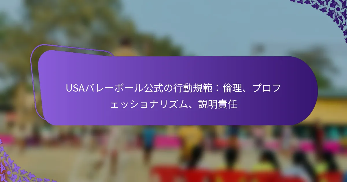 USAバレーボールの公式行動規範は、スポーツにおける公式のための基本的な倫理基準と専門的な期待を定めています。公正さ、誠実さ、責任を促進することで、すべての審判活動が高い専門性と尊重を維持することを保証します。 USAバレーボールの公式行動規範とは何ですか? USAバレーボールの公式行動規範は、スポーツにおける公式に期待される倫理基準と専門的な行動を確立します。これは、すべてのレベルの審判活動において公正さ、誠実さ、責任を促進することを目的としています。 規範の定義と目的 USAバレーボールの公式行動規範は、バレーボール競技に関与する公式の行動と意思決定のガイドラインとして機能します。その主な目的は、すべての公式が試合を審判する際に高い専門性と倫理的行動を維持することを保証することです。 この規範は、公式の責任を概説し、公平性、尊重、ゲームのルールの遵守の重要性を強調しています。規範に従うことで、公式はアスリート、コーチ、観客にとってポジティブな環境に貢献します。 歴史的背景と発展 USAバレーボールの公式行動規範の発展は、数十年にわたり進化してきており、スポーツと社会の審判に対する期待の変化を反映しています。当初、この規範は審判における公正さと誠実さの問題に対処するために作成され、これらは常にスポーツの信頼性にとって重要でした。 時が経つにつれて、規範はベストプラクティスを取り入れ、公式が直面する新たな課題に対処するために更新されてきました。経験豊富な公式、コーチ、選手からの意見がその進化を形作り、倫理的な審判を促進する上で関連性と効果を維持しています。 審判における倫理の重要性 倫理は審判において重要な役割を果たします。公式はルールを施行し、ゲームの精神を維持する責任があります。倫理的な行動は、選手、コーチ、ファンの間に信頼を育み、これはスポーツの誠実さにとって不可欠です。 公式が倫理基準を遵守することで、公正なプレイ環境が創出され、争いごとの可能性が減少し、関与するすべての人にとって全体的な体験が向上します。倫理的な審判は、若い公式や選手に対しても良い手本を示し、尊重と責任の文化を促進します。 規範に示された主要な原則 誠実さ:公式は正直に行動し、公正なプレイの原則を守らなければなりません。 尊重:ゲームにおける役割に関係なく、すべての参加者を尊厳を持って扱います。 責任:審判中に行った決定や行動に対して責任を受け入れます。 公平性:中立で偏見のない立場を維持し、個人的な感情が決定に影響を与えないようにします。 継続的な改善:審判スキルと知識の継続的な教育と発展にコミットします。 規範の範囲と適用性 USAバレーボールの公式行動規範は、地域、全国の競技を含む公認バレーボールイベントに関与するすべての公式に適用されます。すべてのレベルの公式が規範を理解し、遵守することが、審判の一貫性と誠実さを維持するために重要です。 公式は、規範に精通し、その原則を日常の実践に取り入れることが期待されています。規範に違反した場合、懲戒処分が科される可能性があり、審判の役割における責任の重要性が強調されます。 行動規範はどのように公式の専門性を促進しますか? 行動規範は、公式に対する明確な期待を確立し、専門性を審判の基盤として強調します。倫理基準と責任の措置を概説することで、すべての相互作用において誠実さと尊重が最も重要である環境を育みます。 公式に期待される行動基準 公式は、試合中に高い専門性を維持することが期待されています。これには、常に選手、コーチ、他の公式に対して尊重を示すことが含まれます。ゲームのルールを遵守し、公平な決定を下すことは、スポーツの誠実さを維持するために不可欠です。 さらに、公式は時間通りに到着し、適切な服装をし、各試合に備える必要があります。この準備は、スポーツへのコミットメントを反映し、参加者や観客の間での信頼性を高めます。 審判における専門的な行動の例 選手やコーチと明確かつ敬意を持ってコミュニケーションを取る。 プレッシャーのかかる状況でも冷静さを保つ。 偏見なくルールや規則を一貫して適用する。 フィードバックやトレーニングを通じて継続的な自己改善に取り組む。 専門的な行動には、権威を維持しつつも近づきやすいことも含まれます。公式は懸念に耳を傾ける意欲を持つべきですが、ゲームの誠実さを守るために決定にはしっかりとした姿勢を保たなければなりません。 非専門的な行動の結果 非専門的な行動は、規制機関からの懲戒処分を含むさまざまな結果を引き起こす可能性があります。これには、停職、罰金、または審判の役割からの永久的な除外が含まれる場合があります。このような行動は、個人に影響を与えるだけでなく、スポーツの評判を損なう可能性もあります。 さらに、非専門的な行動は、選手やコーチからの信頼の喪失を招き