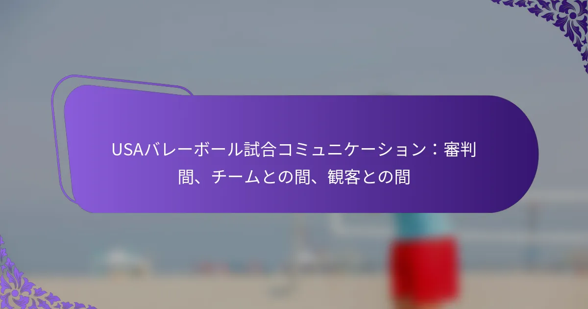 効果的なコミュニケーションは、アメリカバレーボールの試合において重要であり、審判、チーム、観客の間でスムーズなやり取りを確保します。審判は、口頭および非言語的な合図を組み合わせ、テクノロジーを活用して、コート上の秩序と明確さを維持します。さらに、チームや観客との積極的なコミュニケーションは、全体的な体験を向上させ、すべての参加者にとって歓迎され、情報が行き届いた環境を育みます。 アメリカバレーボールの試合中、審判間のコミュニケーションプロトコルは何ですか? アメリカバレーボールの試合中の審判間のコミュニケーションプロトコルは、秩序を維持し、公平なプレーを確保するために不可欠です。これらのプロトコルには、口頭の方法、非言語的な合図、試合中の明確で効果的なやり取りを促進するためのテクノロジーの使用が含まれます。 審判が使用する口頭コミュニケーション方法 審判は、試合中に決定を伝え、行動を調整し、状況を明確にするために口頭コミュニケーションに依存しています。誤解を避けるためには、明確で簡潔な言葉が重要です。一般的なフレーズには、ファウルのコール、タイムアウトの合図、選手の行動についての議論が含まれます。 試合中、審判はすべての関係者がコミュニケーションの文脈を理解できるように、標準化された語彙を使用することがよくあります。この一貫性は、プロフェッショナルな雰囲気を維持し、コート上での権威を強化します。 効果的な口頭コミュニケーションは、審判間の積極的な傾聴も含まれます。決定を確認し、潜在的な問題について議論することで、審判はより効率的に協力し、エラーの可能性を減らすことができます。 非言語的な合図と手のジェスチャー 非言語的な合図と手のジェスチャーは、アメリカバレーボールの試合中の審判間のコミュニケーションにおいて重要な役割を果たします。これらの合図は、ゲームの流れを妨げることなく情報を迅速かつ明確に伝える方法を提供します。例えば、審判は特定の手のジェスチャーを使用して、ファウル、ポイント、またはタイムアウトを示します。 ファウルの合図:開いた手の上げた腕はファウルを示し、閉じた拳はチームに与えられたポイントを示すことがあります。 タイムアウトの合図:審判は両手を腰に置いてタイムアウトを示し、選手やコーチがプレーの中断を認識できるようにします。 お互いとのコミュニケーション:審判は、決定を確認したり、潜在的な問題を知らせたりするために、うなずきやアイコンタクトなどの微妙なジェスチャーを使用することがあります。 これらの非言語的な合図は、コミュニケーションの効率を高め、審判が試合に集中しながら、必要な情報を迅速に伝えることを可能にします。 コミュニケーションのためのテクノロジーの使用 テクノロジーは、アメリカバレーボールの試合におけるコミュニケーションプロトコルの不可欠な部分となっています。審判は、ヘッドセットやラジオを使用して、 discreetにコミュニケーションを行い、ゲームを中断することなく情報を共有します。この方法は、複雑な状況を議論したり、複数の審判間でのコールを調整したりするのに特に便利です。 インスタントリプレイシステムもコミュニケーションに役立ち、審判はプレーを再確認して決定を確認できます。このテクノロジーは透明性を高め、正しいコールが行われることを確保し、選手、コーチ、観客の間に信頼を育みます。 しかし、テクノロジーへの依存は、審判が警戒心を持ち、適応力を維持することを要求します。試合の整合性を保つために、テクノロジーの使用と自身の判断をバランスさせる必要があります。 審判のための標準化された手続き 標準化された手続きは、アメリカバレーボールの試合における審判の一貫性と公平性を確保するために重要です。これらの手続きには、ファウルの合図、タイムアウトの管理、紛争の処理に関するガイドラインが含まれます。これらの確立されたプロトコルに従うことで、審判はすべてのチームに対して公平な競技環境を維持できます。 審判は、これらの標準化された手続きに慣れるためのトレーニングを受けます。これらは公式のルールブックに概説されていることが多く、このトレーニングにより、すべての審判が同じ理解を持ち、試合中のさまざまな状況に均一に対応できるようになります。 さらに、これらの手続きの定期的なレビューと更新は、審判がルールやベストプラクティスの変更に対応できるようにし、全体的な審判の質を向上させます。 明確さと一貫性の重要性 コミュニケーションにおける明確さと一貫性は、アメリカバレーボールの試合における効果的な審判にとって不可欠です。審判が明確にコミュニケーションを行うと、選手やコーチは決定をよりよく理解でき、フラストレーションを減らし、スポーツマンシップを促進します。ルールの一貫した適用