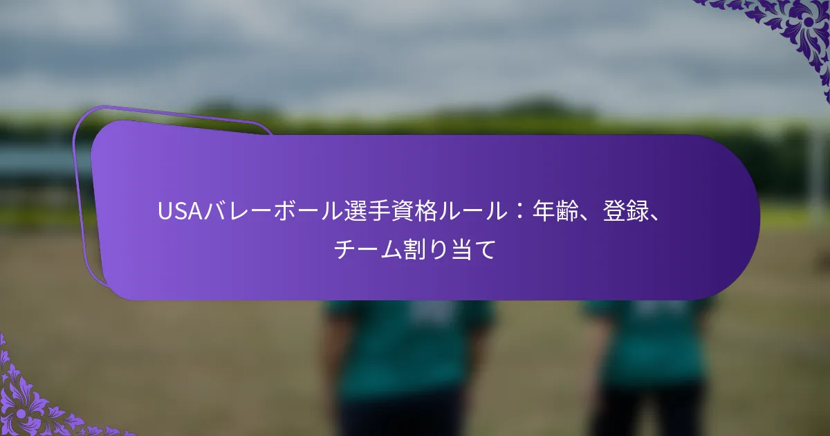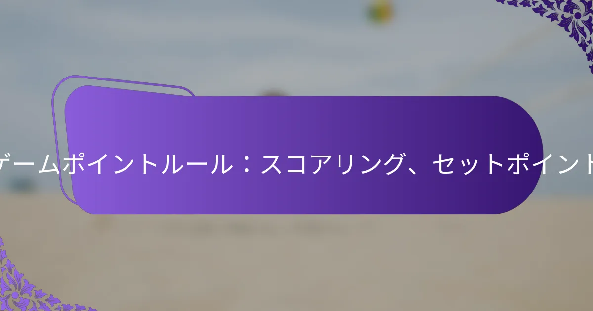 USAバレーボールのゲームポイントルールは、試合を支配する得点システムを概説しており、公平性と一貫性を確保しています。ラリースコアリングシステムを利用し、すべてのサーブでポイントが与えられ、ゲームの競争性が高まります。セットポイントは、チームが特定のスコア、通常は24ポイントに達し、相手に対して2ポイントのリードを維持することでセットを確保できる重要な瞬間です。 USAバレーボールのゲームポイントルールとは? USAバレーボールのゲームポイントルールは、試合中にどのようにポイントが得られるかを定義し、ゲームの流れと結果を決定します。これらのルールは、競技全体の公平性と一貫性を維持するために不可欠です。 バレーボールにおけるゲームポイントの定義 バレーボールにおけるゲームポイントは、各ラリーでのパフォーマンスに基づいてチームに与えられるポイントを指します。チームがラリーに勝利するとポイントが得られ、これは相手チームがボールを返せなかったり、ファウルを犯した場合に発生します。 USAバレーボールでは、試合は通常、ベスト・オブ・ファイブセット形式で行われ、各セットは25ポイントまでプレイされ、チームは少なくとも2ポイントの差で勝たなければなりません。試合が第5セットに達した場合、そのセットは15ポイントまでプレイされ、勝利には同様に2ポイントのマージンが必要です。 ゲームポイントルールの目的 ゲームポイントルールの主な目的は、構造化された公平な競技環境を作り出すことです。これらのルールは、すべてのチームがどのようにポイントが得られ、試合に勝つために何が必要かを理解することを保証し、スポーツマンシップと一貫性を促進します。 さらに、ゲームポイントルールはプレイのペースを維持し、試合が無限に引き延ばされるのを防ぎます。明確なポイントの閾値と勝利条件を設定することで、ルールは選手と観客の両方にとってより魅力的な体験を促進します。 得点システムの概要 USAバレーボールはラリースコアリングシステムを採用しており、どのチームがサーブをしても、すべてのラリーでポイントが与えられます。この得点方法は、サーブを行うチームだけがポイントを得ることができる従来の得点システムとは対照的です。 ラリースコアリングシステムの下では、試合は通常、セット1から4まで25ポイントまでプレイされ、第5セットは15ポイントまでプレイされます。チームは2ポイントのマージンで勝たなければならず、これにより接戦のセットの終わりに戦略的な要素が加わります。 他のバレーボール団体との違い USAバレーボールがラリースコアリングを使用している一方で、他の団体は異なる得点システムや試合形式を持っている場合があります。たとえば、一部の国際大会では、サーブを行うチームだけがポイントを得る従来の得点を使用していることがあります。 さらに、セットの長さやプレイされるセットの数において、異なるリーグや団体間でのバリエーションが見られます。これらの違いを理解することは、さまざまな競技に参加する選手やコーチにとって重要であり、ゲーム戦略や準備に影響を与えます。 USAバレーボールではどのようにポイントが得られるのか? USAバレーボールでは、ラリースコアリングシステムを使用してポイントが得られ、どのチームがサーブをしてもすべてのサーブでポイントが与えられます。この方法により、試合はスピーディーで競争的になり、チームはサーブを持っていないときでもポイントを獲得できます。 得点方法:ラリースコアリングの説明 ラリースコアリングシステムは、USAバレーボールで使用される主要な方法であり、どちらのチームも各ラリーでポイントを得ることができます。このシステムは従来のサイドアウト得点を置き換え、すべてのサーブが両チームにとって重要になります。 試合は通常、設定されたポイント数、通常は25ポイントまでプレイされ、チームは少なくとも2ポイントの差で勝たなければなりません。スコアが24-24に達した場合、1チームが2ポイントのリードを達成するまでプレイが続きます。 決定的なセットでは、チームは15ポイントまでプレイし、再び勝利には2ポイントのマージンが必要です。この得点方法は、選手と観客の両方にとってゲームをダイナミックで魅力的に保ちます。 ゲームプレイ中のポイント配分 ポイントは、ゲームプレイ中のさまざまな成功したアクションに基づいて配分されます。相手チームがボールを返せなかったり、アウトにしたり、ファウルを犯した場合、チームはポイントを獲得します。 成功したサーブ、攻撃、ブロックも得点に寄与することがあります。たとえば、選手がサーブを行い、相手チームがボールを返せない場合、サーブを行ったチームがポイントを得ます。 ポイントがどのように得られるかを理解することで、選手はサーブの精度を向上させたり、失点につながるエラーを最